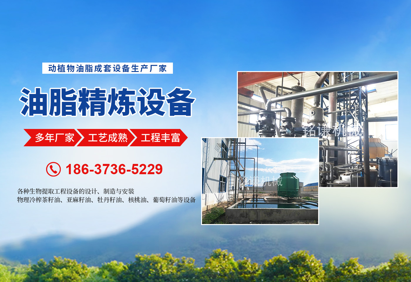 河南省銘謙機械設備有限公司,是集開發、科研、生產、安裝、調試、售后服務為一體的現代化企業。 我公司擁有優良的技術設備,為動物油熬煉設備,無公害化處理設備,核桃油設備,茶籽油設備,牡丹籽油設備,牡丹籽油機械產品的品質提供了有力的技術和質量保證。 ★油料預處理、榨油成套設備的設計、制造與安裝。 ★油料浸出設備的設計、制造與安裝。 ★半連續,連續(化學)物理精煉設備的設計、制造與安裝。 ★茶籽油,牡丹籽油,核桃油,亞麻籽油,葡萄籽油的設備的設計、制造與安裝。 ★各種生物提取工程設備的設計、制造與安裝。 ★各種(豬、牛、羊、雞、鴨等)油廠熬制、精煉設備的設計、制造與安裝。 ★濃香型花生油、菜籽油、茶籽油、亞麻籽油、葵花籽油等設備的設計、制造與安裝。 ★物理冷榨茶籽油、亞麻籽油、牡丹籽油、核桃油、葡萄籽油等設備的設計、制造與安裝。 ★豆類清理設備、雜糧脫皮制粉設備、小麥制粉設備、大米加工流水線、小米加工流水線等設備的設計、制造與安裝。 ★各種過濾設備,化工設備的設計與制造。 我們以工藝和信譽求發展,以質量和設備求生存。堅持“質量為上,用戶為上”的宗旨為客戶提供完善的技術咨詢和售后服務。始終把產品質量作為企業生存、發展的主要要務,竭誠歡迎新老用戶光臨指導。